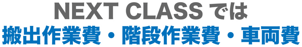 ※お荷物の量や作業の内容によっては、追加料金が発生する場合がございます。(例:2階以上からの運び出し、大型の金庫・ピアノ、特殊清掃や高所での作業など)